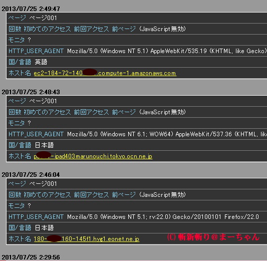 アクセス解析を見ていたら、明らかに変な痕跡がある。